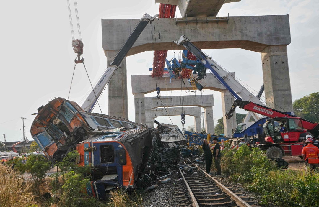В Таиланде строительный кран упал на пассажирский поезд: десятки погибших